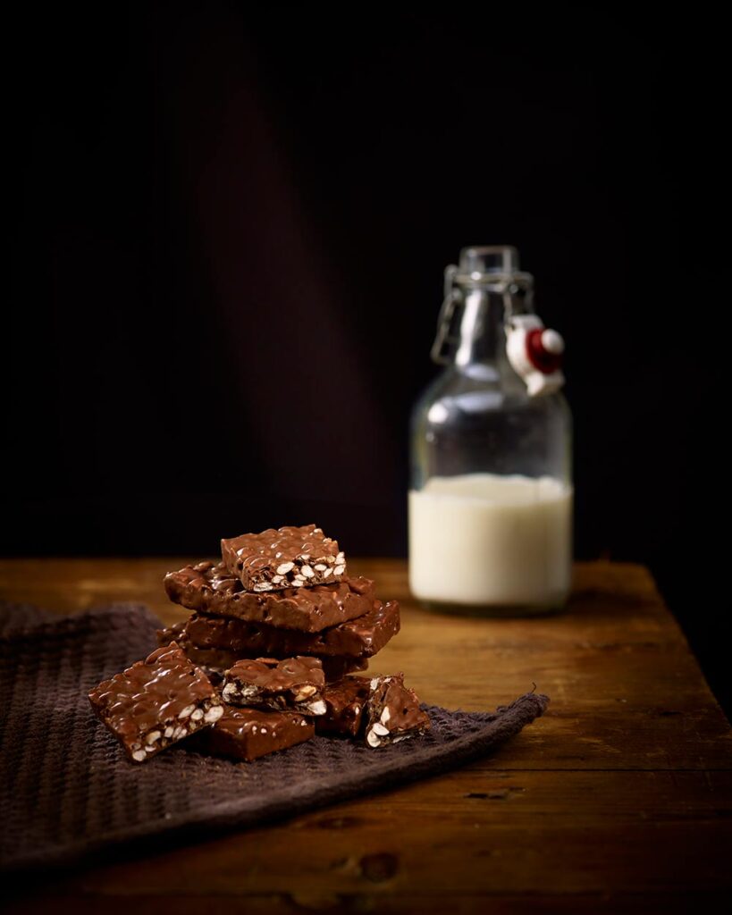 Tummasta suklaasta ja puffatusta riisistä tehty patukka, joka on gluteeniton, sokeriton ja laktoositon. Ei sisällä palmuöljyä.