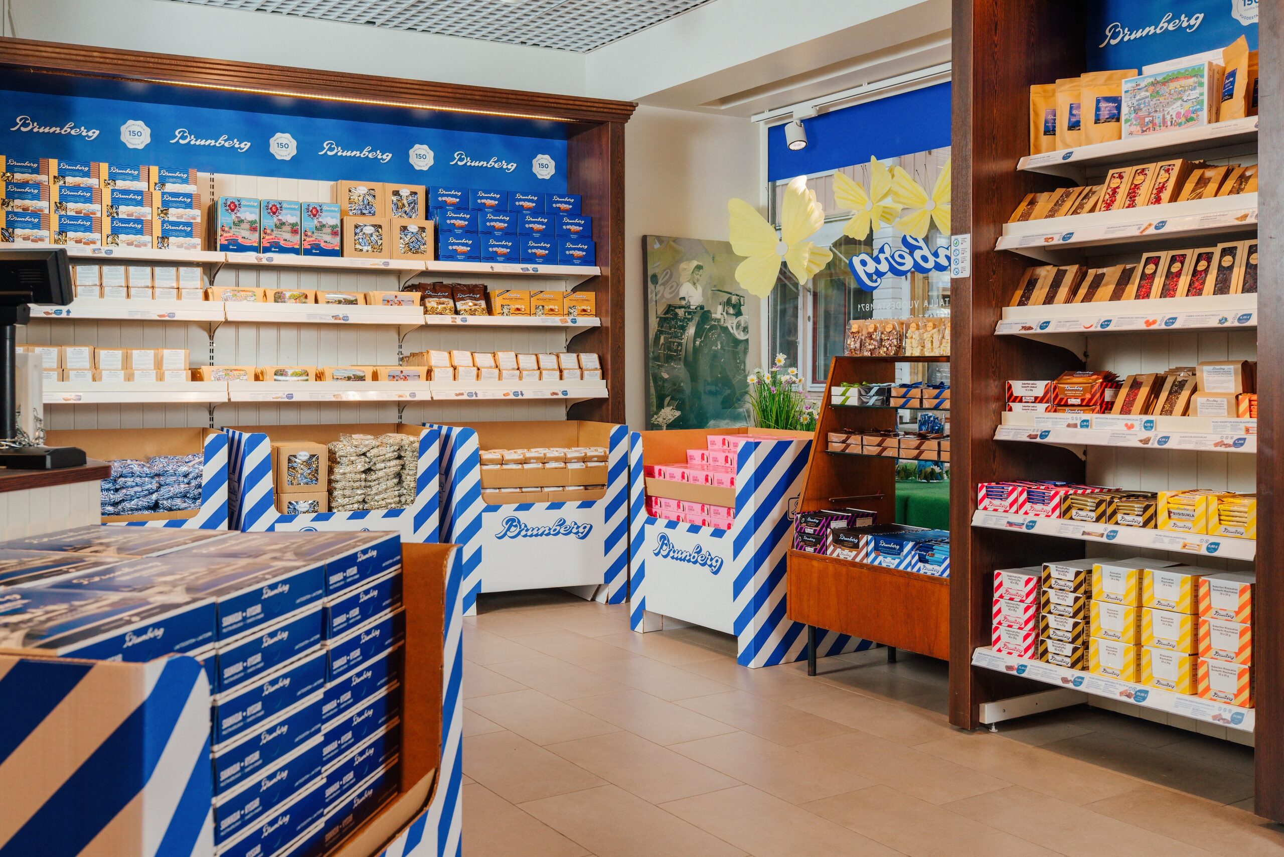 You will be met by shelves overflowing with a selection of popular sweets: kisses, truffle, liquorice, caramel toffee, handmade chocolate, marmalade candy and much more. Delicious sweets, gifts and souvenirs are available in bigger packages in our own shops than elsewhere.