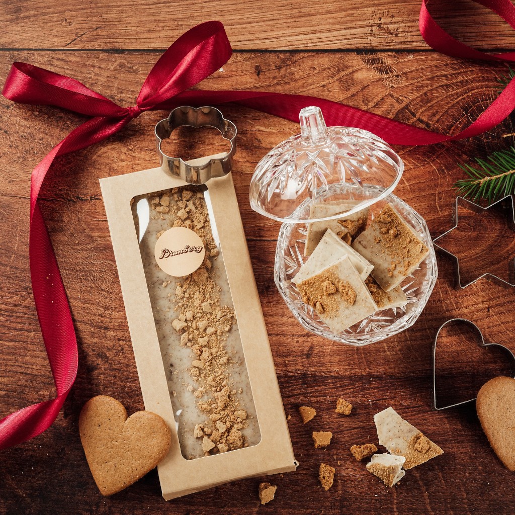 Brunberg’s gluten free Handmade White Chocolate with Gingerbread is the most elegant chocolate bar for Christmas with velvety white chocolate and spicy gingerbread crumbs. A soft delicacy that melts in the mouth and leaves a taste of Christmas on the tounge.