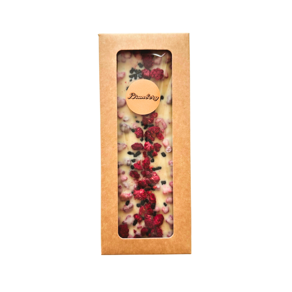 White chocolate with raspberry and salty liquorice is a handmade taste experience where smooth, sweet white chocolate meets fresh raspberry and bold liquorice. The perfect gift for a sweet tooth or a little treat just for yourself.