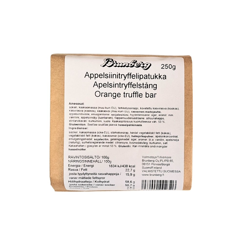 Crisp chocolate on the outside, a delicious orange marmalade inside. Together with soft and velvety truffle the Brunberg Orange Truffle Bar is a fruity and elegant chocolate bar which makes you feel good.