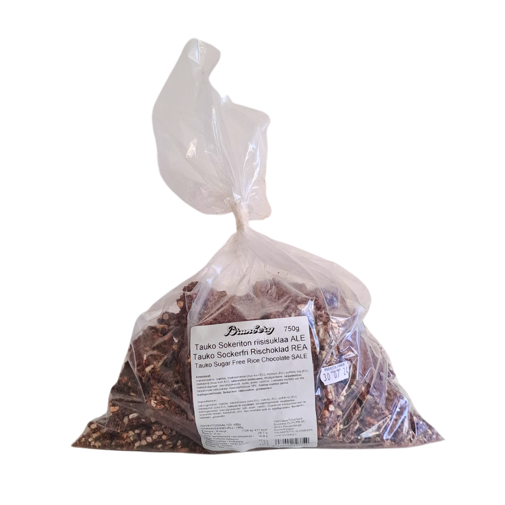 The sugar free rice chocolate is a delicious treat and is now also available in a big second-rate bulk bag! This bag contains rice chocolate pieces that differ from the standard in shape or size.