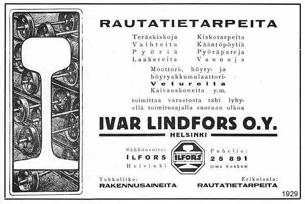 Ivar Lindfors gjorde också karriär som huvudsaklig ägare av Lovisa Järnväg Oy, styrelseordförande för Helsingfors Magasinaktiebolag och direktör för Helsingfors hamnmyndighet samt som chef för Finlands Hamnförbund. Lindfors hade också inflytande i Helsingfors Telefonförening (sedermera Elisa Oyj).