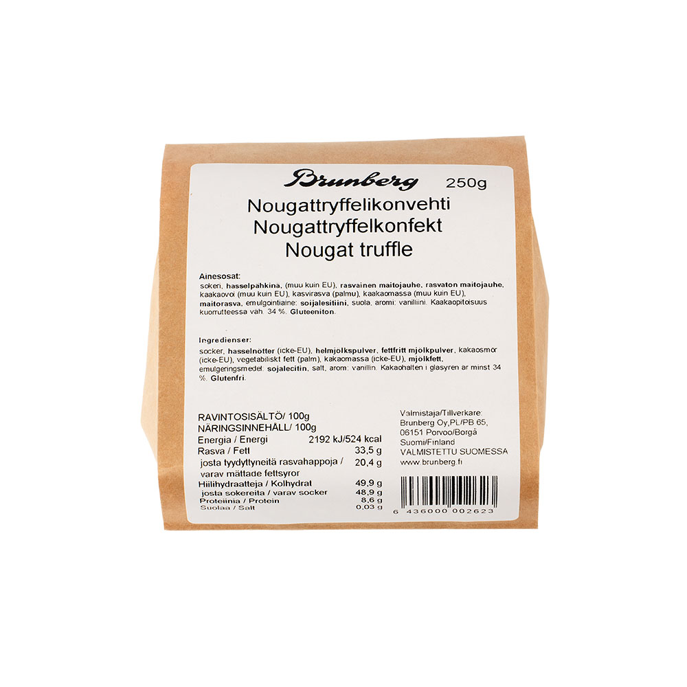 Elegantti makeinen, jossa yhdistyy täyteläinen suklaa ja maukas pähkinä. Nougattryffeli on ajaton mestariteos, joka on ollut Brunbergin valikoimissa jo 1930-luvulta lähtien.