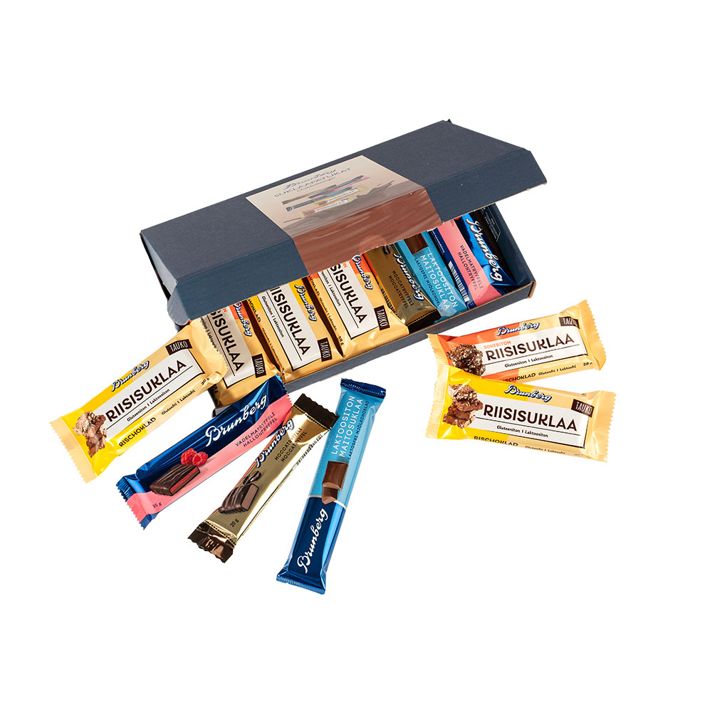 Brunberg Patukkalaatikko tekee herkuttelusta helpompaa ja hauskempaa. Laatikko sisältää kaikki Brunbergin herkulliset suklaapatukat kaksin kappalein. Täydellinen lajitelma makeisiin herkutteluhetkiin! Huom. Kaura-omenasuklaapatukka on poistunut valikoimasta. Tuotteen kokonaispaino 350 g.